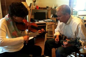 Over the Easter weekend Fran came for a visit and led the group with some fine fiddle playing. She introduced us to some new Celtic songs “Britches Full of Stiches” and “ Road to Lisdoonvarna” as well as play some more traditional Old Time tunes like “Old Joe Clark” and “Boil Them Cabbage Down.” The latter Fran showed us an unknown part B to this song. John even joined in with playing along with the Mountain Dulcimer and Edna got to try our her new Banjo. Overall a good weekend working to integrate a new player and so very glad to have Fran join us.
